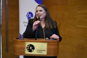 La jornada incluyó la conferencia magistral de Dora Altbir Drullinsky, Premio Nacional de Ciencias Exactas 2019, quien abordó los desafíos de la propiedad intelectual y la innovación científica. “Chile publica ciencia por sobre lo que le correspondería según su población, pero patenta mucho menos de lo que podría. Si no logramos transformar conocimiento en innovación y productos, será muy difícil avanzar hacia el desarrollo”, advirtió, subrayando la importancia de fortalecer los sistemas de protección y transferencia tecnológica.